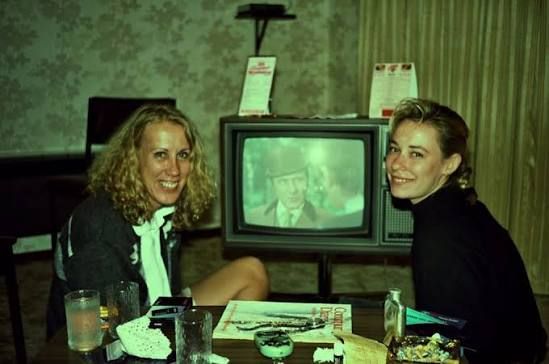 Australske The Go-Betweens’ Amanda Brown bliver 60 i dag. Her er hun på et snapshot (med The G-B’s trommeslager Lindy Morrison til venstre) fra dengang fjernt, der fandtes rigtige fjernsyn. Tillykke til Amanda, som i 1986 med stor musikalitet (plus ditto charme) kom ind og løftede det lille band.