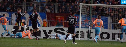 Det dejlige menneske Fernando Torres udfører her sin impulsive hyldestscoring til Michael Laudrup’s VM86-driblemål, det mod Uruguay, i Liverpool’s 4-0-sejr i blæsende Marseille i aftes. Resultatet betyder videre, og videre betyder lodtrækning d. 21/12 i UEFAland. Mulige LFC-modstandere i 1/8-finalen er Real Madrid, Barcelona, Sevilla, Inter og AC Milan. Ikke dårligt.